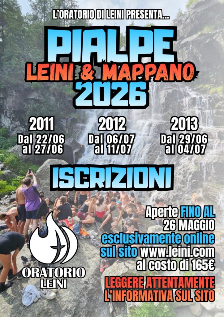 Per iscriversi occorre scaricare il modulo dal sito (lo trovate qui sotto), effettuare il bonifico dell’acconto pari a euro 250,00 e consegnare in ufficio parrocchiale di Leinì (ORARIO: dal martedì al giovedì 9-11,30; venerdì 16-18): scheda compilata in tutti i campi, copia del bonifico effettuato e fotocopia della carta di identità fronte e retro entro il 21 aprile 2026.